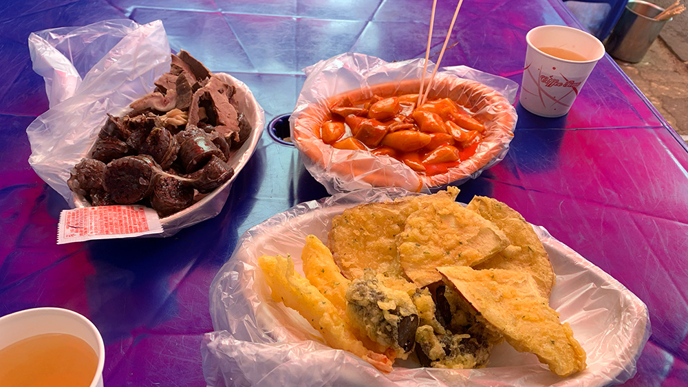 순대, 떡볶이, 모둠 튀김 각 한 접시씩 주문했는데 만원 정도 계산한 듯합니다.