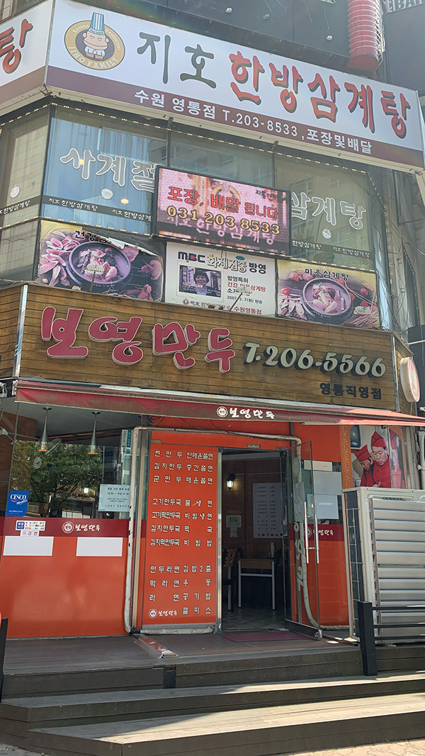 수원 영통의 경희대 근처에 있는 분식집 보영 만두입니다. 학생들이 많이 가는 곳이라 가성비 좋고 맛도 좋았던 기억이 있어 가볍게 점심을 먹기 위해 방문했습니다. 어느 학교 앞에나 있는 분식집 메뉴와 맛도 딱 그 맛입니다.