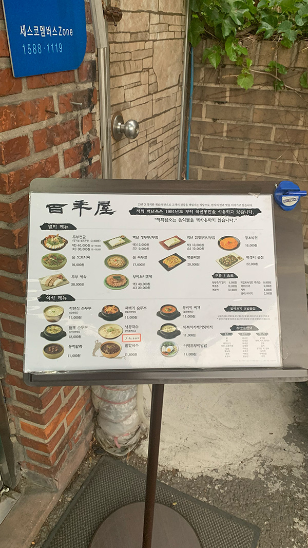 두부전문점 답게 가게 입구 메뉴판에는 제가 좋아하는 두부 요리들로 가득합니다.