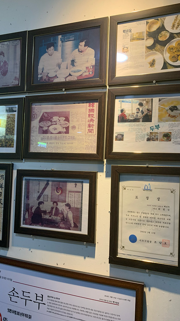 벽면에는 백년옥의 역사가 담긴 액자들로 빼곡합니다.