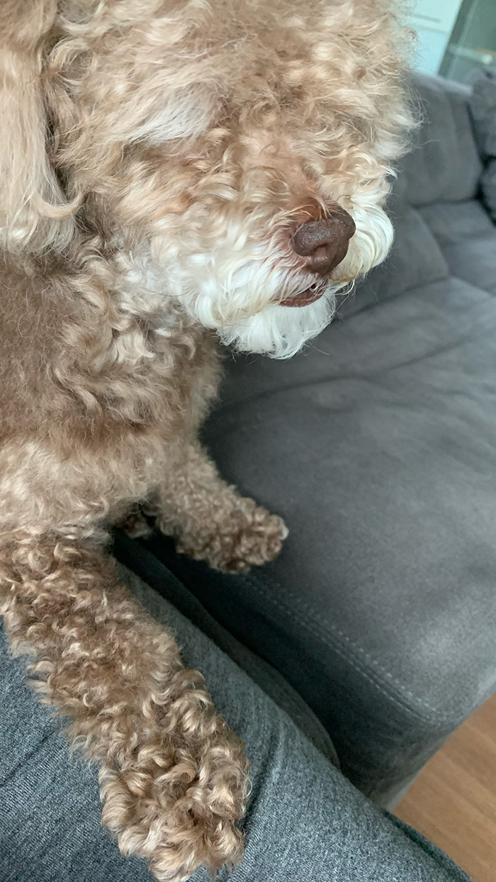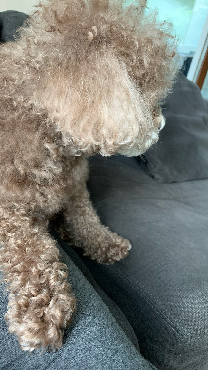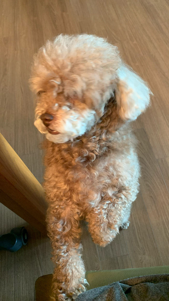 초코의 털이 하룻밤이 다르게 하얘져요.