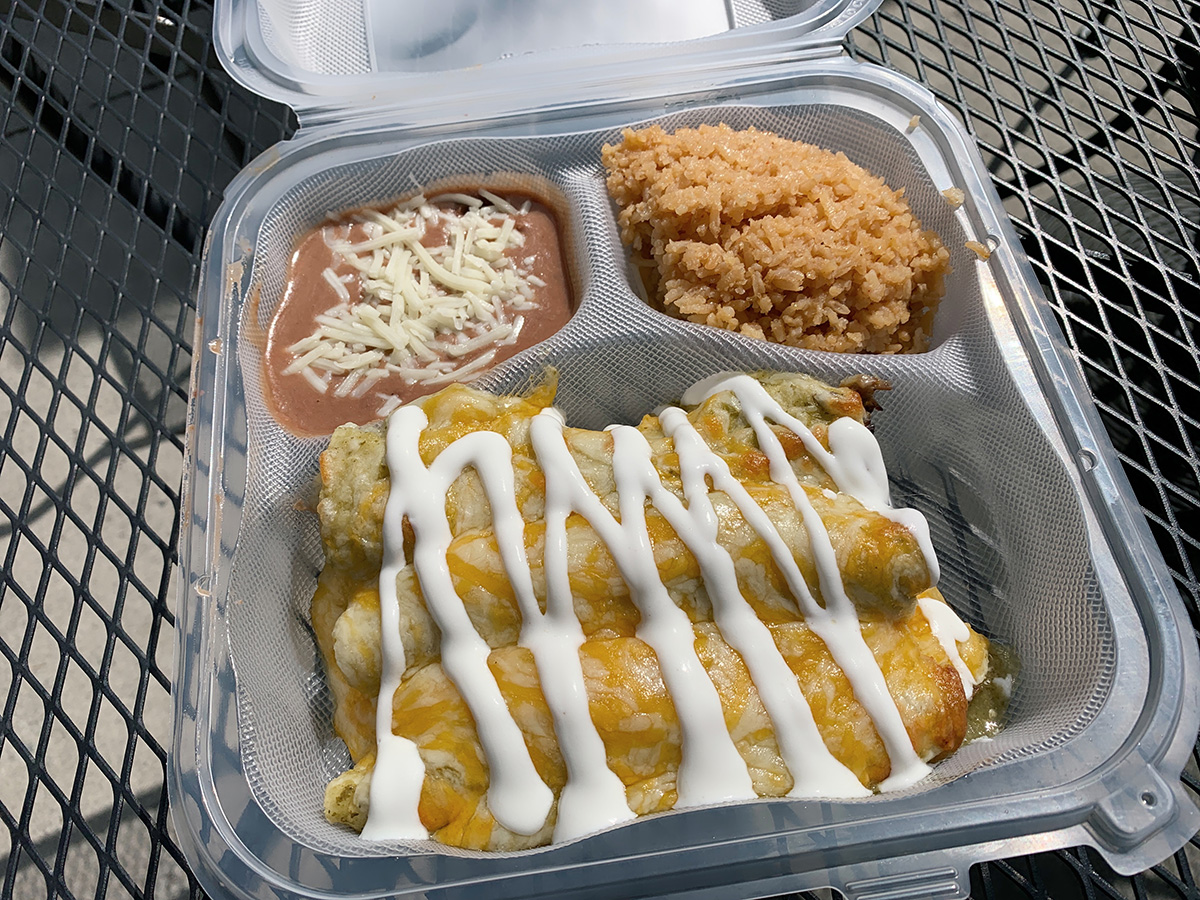 저의 픽은 리프라이드 빈과 밥, 브리토에 소스가 올려진 Enchilada 였어요.