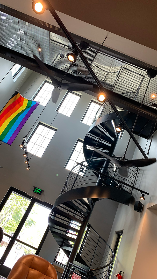 주변을 둘러보니 멋스럽게 돌아가는 원형 계단이 눈에 들어옵니다.