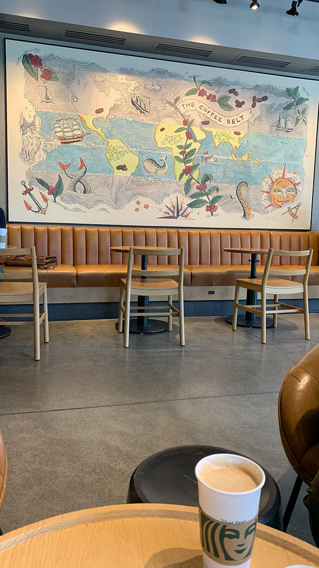 추운 몸을 녹이기 위해 멕시칸 그릴 옆의 스타벅스로 자리를 옮겼습니다.