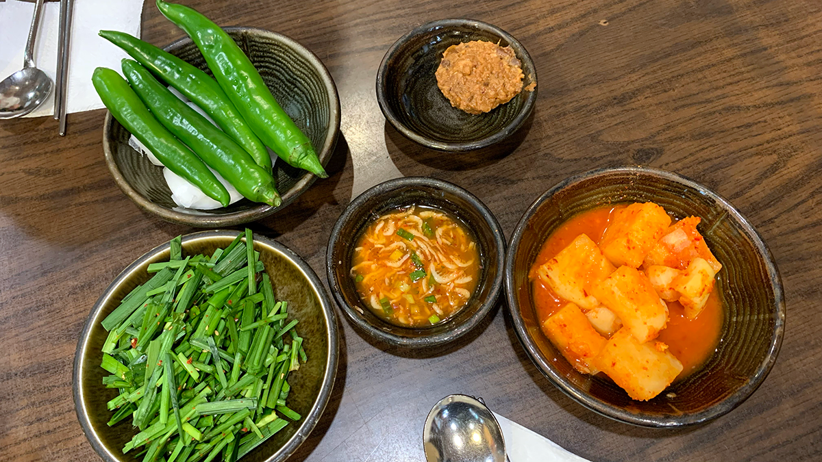 캐나다에서는 그냥 새우젓이랑 작은 깍두기가 나오는데 한국 인심 좋아요~