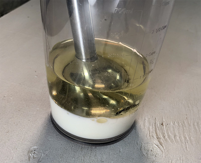 2. 핸드블랜더로 1분간 리프팅하지 않고 우유와 오일을 섞어주는 정도로 블랜딩 해준다.