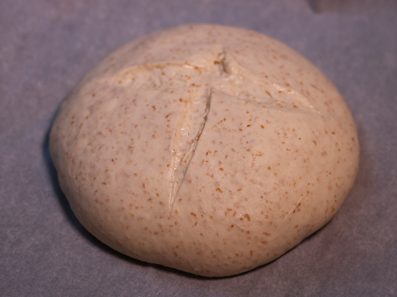16. 실온에서 2배 발효시킨 빵에 칼집을 내고 구워줍니다. 칼집을 안 하면 옆구리가 터져요~