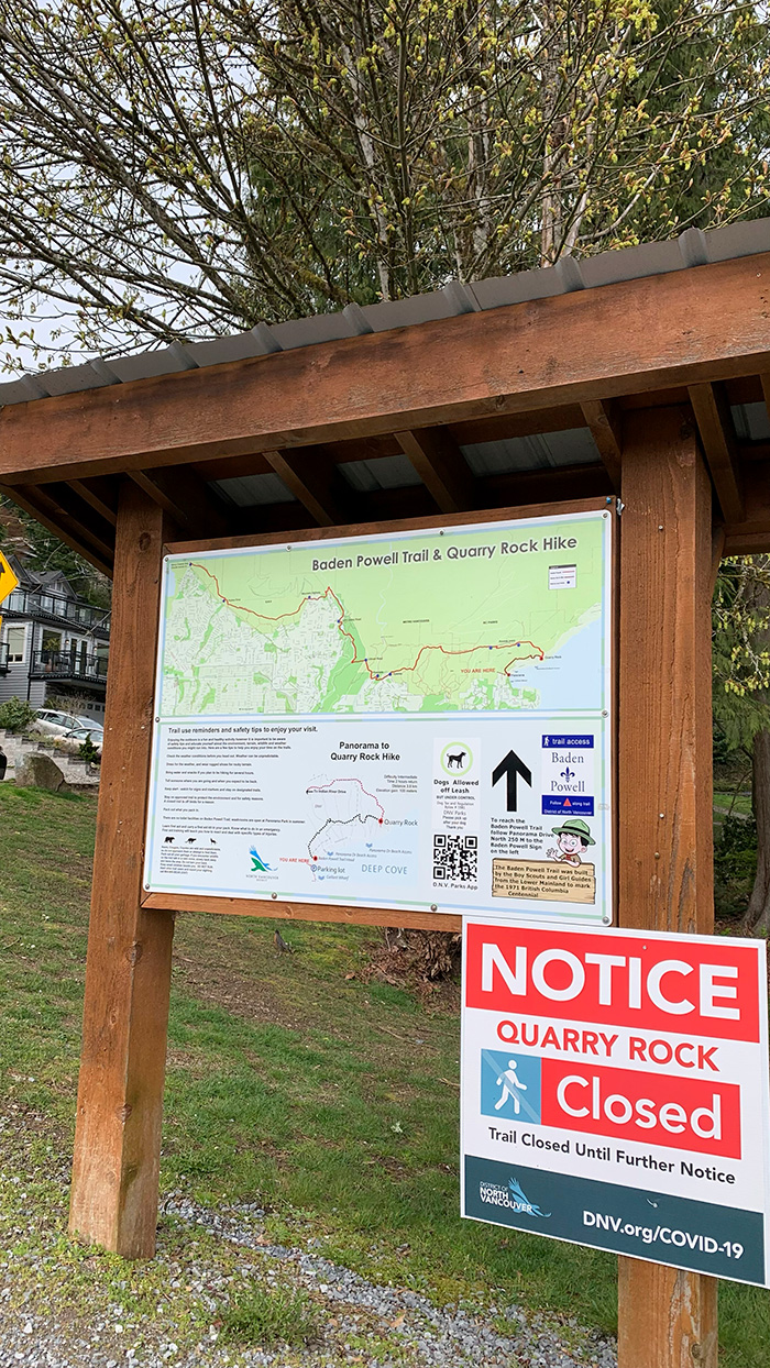 딥 코브의 주택가 뒤쪽 트레일을 따라 오르다 보면 쿼리 락 Quarry rock 이라는 평평한 돌이 나옵니다. 가볍게 하이킹하기 좋은 트레일인데 코로나 팬데믹 때 닫은 후 아직까지도 닫혀있습니다. 딥 코브의 멋진 주택들과 산, 바다를 볼 수 있어 주말에는 많은 사람들이 방문하던 곳입니다.