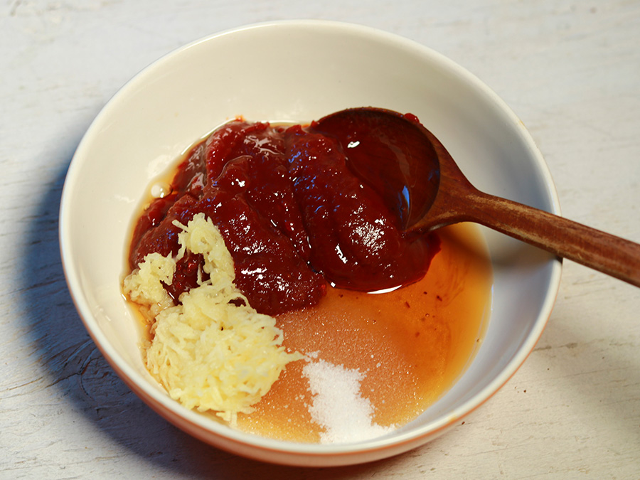 고추장 3T , 설탕 2T , 참기름 3T , 마늘 1T