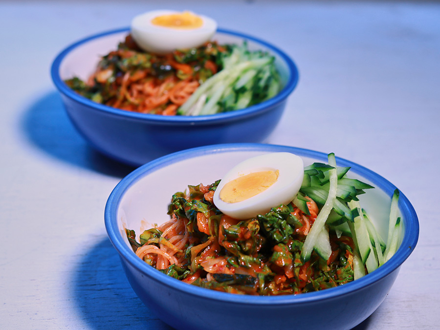 날이 쌀쌀하면 따뜻한 국물 요리가 먹고 싶어지고 해가 쨍하게 나오는 날은 매콤한 비빔면이 먹고 싶어 집니다. 주로 만들어 먹던 새콤하고 매콤한 비빔국수를 염두에 두고 있었는데 귀신도 모를 제 속마음을 어떻게 읽었는지 알고리즘이 유튜브 편스토랑 채널로 인도하셨습니다.