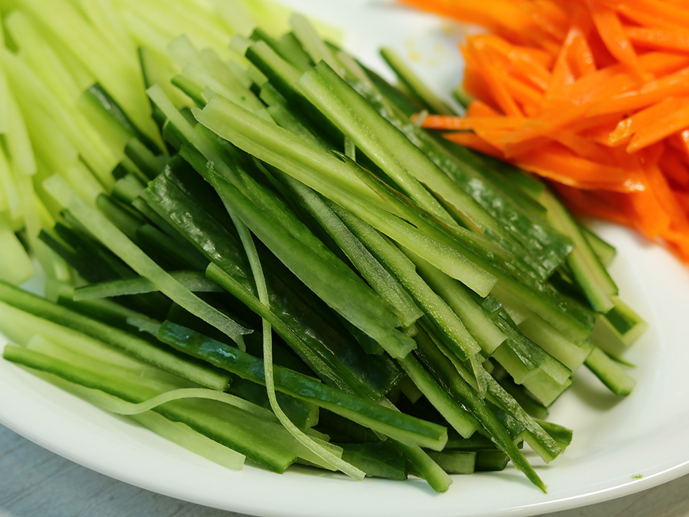 오이는 수분이 많은 씨부분은 제가 먹고 돌려 깎기 해서 채를 썰었습니다.