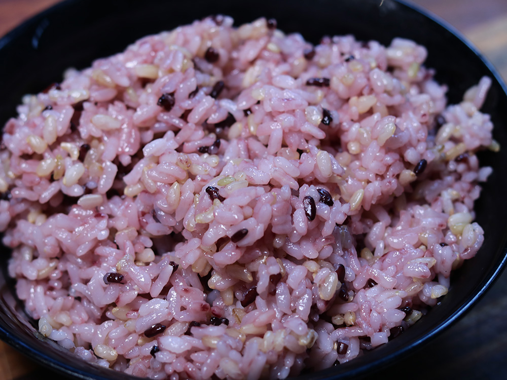 백미와 현미, 흑미로 지은 밥이라 은은한 보랏빛이 도는 김밥입니다.