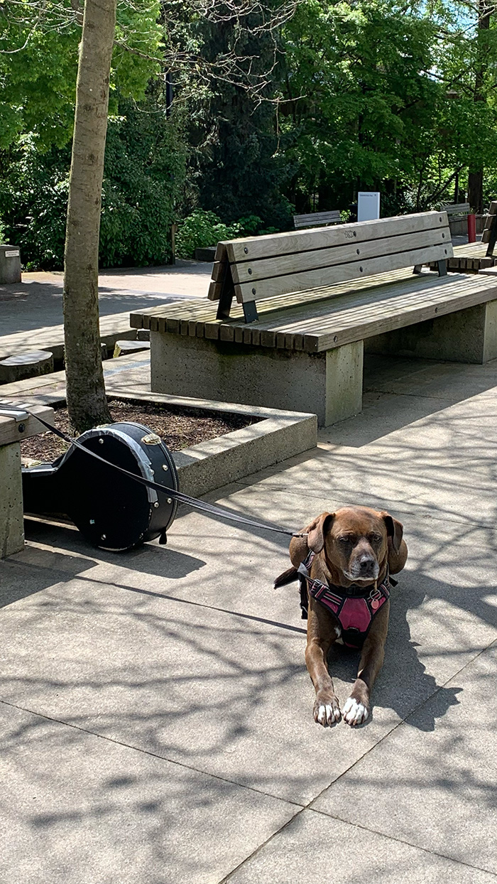블랜츠 커피를 나와 잠시 산책을 하다 도서관 앞에서 얌전하게 주인을 기다리는 개를 만났습니다.
