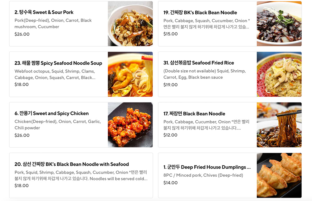 메뉴판 사진 찍는걸 깜박해서 인터넷 배달 서비스 업체에서 캡처한 메뉴입니다.
