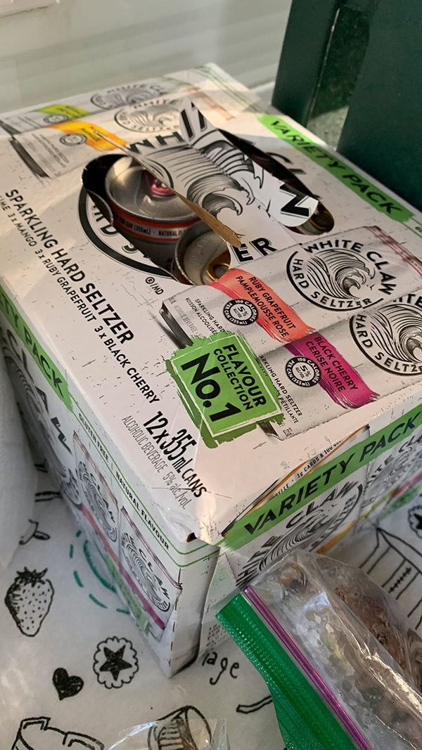 탄산수에 설탕을 첨가해 이스트로 발효한 후 다양한 맛을 첨가한 White Claw 입니다. 레몬, 라임, 블랙체리, 자몽맛이 3개씩 들어있고 다른 패키지에는 레몬, 망고, 귤, 수박 맛이 있는데 수박 맛이 생각보다 맛있습니다. 배 불러서 결국 못 마셨답니다. 다행이죠 :)