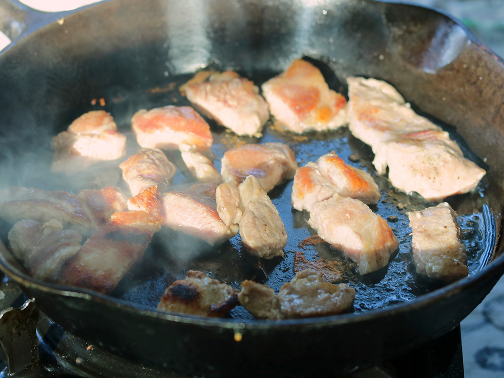 삼겹살보다는 기름이 적은 목살을 주로 먹는데 삼겹살 기름에 파를 볶다가 김치 총총, 밥을 넣은 삼겹살 볶음밥은 꿀맛입니다. 이 맛을 이제야 알게되다니.. 너무 맛있습니다.